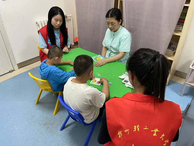 为进一步提高大家对儿童心理问题的重视程度,带动同学们理解并接纳患有自闭症的儿童,6月30日,18新利直播 软件学院“用心陪伴,童心同行”社会实践小分队在高任翔老师带领下来到郑州大学五附院儿童康复医学科儿童自闭症中心开展“陪伴康复儿童”暑期社会实践活动。