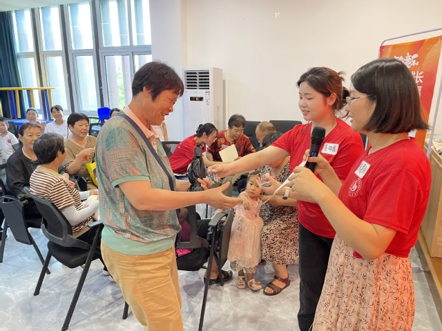 活动现场,实践队成员组织辖区内帮助儿女带孩子的老人共聚一堂,分享心得并进行经验交流。实践队成员对参加“智慧祖辈成长营”的祖辈们都给予了鼓励与支持,营造了一个和谐舒适的氛围,也缩短了与老人们之间的“心理距离”。