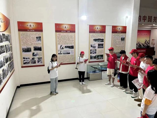 后进入一个个展室和展厅,在两位老师的讲解下,通过一处处红色遗迹、一幅幅历史画卷、一件件珍贵文物、一个个革命故事,感受到历史的车轮滚滚向我们辗来,仿佛走进了那个炮火连天的动荡年代,和先烈们一起经历那段可歌可泣的艰苦岁月,深刻体会革命先烈们不屈不挠、不怕牺牲的爱国主义情怀。队员徐鼎博感叹道“通过参观了解中原豫西抗日纪念园各个时期的重大历史事件和革命先烈的光辉事迹,对我来说是一次十分深刻的党史教育,以后一定会勇担时代使命,不负党的重托,不负人民期望,以忠诚之心跟党走,以赤子之心为人民,以青春之名献力量,以奉献之力报祖国,以更加昂扬的姿态,奋力走好新时代的长征路,迎接新挑战”!