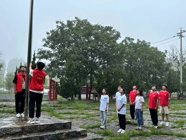 在“中原豫西抗日纪念园”的广场上,两位队长以饱满的热情、蓬勃的朝气将鲜艳的五星红旗冉冉升起。在激昂的《义勇军进行曲》中,队员们齐唱国歌,对国旗行注目礼,浓浓的爱国热情激荡在每一个人的心中。并在升旗结束后面对党旗重温入党誓词,在铿锵有力的宣誓声中,做出共产党员的郑重承诺,响亮而坚定的声音在广场前响起。
