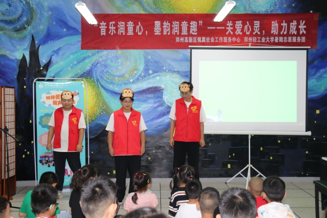为关爱青少年身心健康,培养青少年积极向上的价值观和行为习惯,7月1日,18新利直播 建筑环境工程学院鼓乐筑心志愿服务队联合郑州市沟赵办事处嘉木苑社区和郑州高新区铭晨社会工作服务中心开展了第五期音乐心理团辅暑期实践志愿活动——音乐润童心,墨韵润童趣。活动涵盖才艺展示、书法、绘画以及志愿服务队精心编排的儿童音乐剧、亲子互动游戏等,旨在让小朋友们在美育之中感受音乐的魅力,培养小朋友对传统文化的兴趣与热爱。
