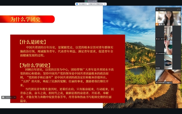 外国语学院团课理论宣讲小分队在河南、陕西、广东等地,通过线上、线下相结合的方式开展了“青春心向党,奋斗正当时”主题团课宣讲活动。宣讲队成员与当地青少年团员们共同学习理论知识,重温入团誓词,为续写时代华章蓄力。