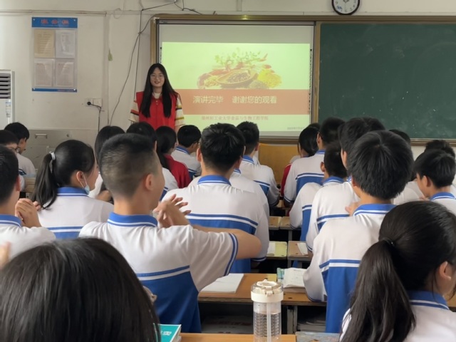 前往信阳市第一初级中学的实践团队以“关注食品安全,保障身体健康”为主题进行了宣讲活动。队员结合日常外出餐饮的常见问题,讲解了食品安全知识常识、如何选购冷饮食品、食品中潜藏的危险以及食品如何保鲜四部分内容,帮助同学们从有益健康的角度选择以及保存不同类型的食品。一系列有奖问答、竞猜抢答活动寓教于乐,让同学们兴致盎然,反响热烈。大家在欢歌笑语中耳濡目染,在乐教乐学中受益匪浅,真正将食品安全知识牢记于心。