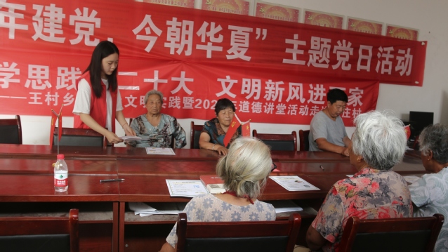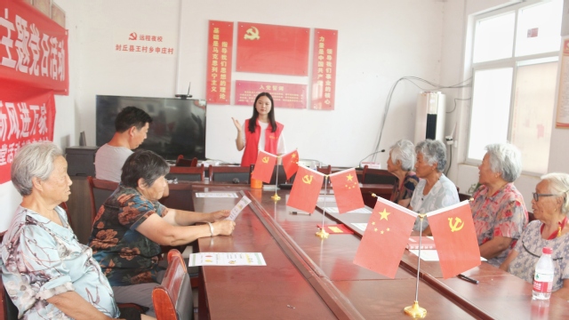 在封丘县党群服务中心,在村支书的组织带领下,参加活动的老人在村委会议室齐聚一堂。宣讲团成员首先为他们发放膳食营养科普宣传页,讲解宣传页上的食品营养知识,通过现场交流了解老人们日常饮食结构,帮助他们发现日常膳食中存在的一些问题,并针对性提出个性化建议。近年来老年人保健品骗局时有发生,实践队员也由热点话题切入,同老人们讨论如何正确看待及使用保健品,避免陷入广告营销的套路,不仅使老年人对膳食营养与食品安全有了深入了解,也增强了对推销诈骗的防范意识。