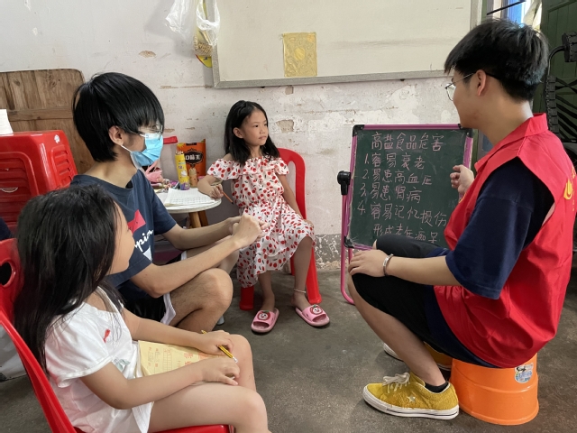 高盐饮食危害多,已成为多种心脑疾病的重要诱因。在海南海口,丰富的海产品与海盐摄入,高盐腌渍的饮食习惯更是司空见惯。实践队员结合当地实际情况,走进海口美兰乡村社区,为小朋友们开展了“食品健康安全-高盐食品危害”的主题知识宣讲活动。实践队员通过交谈了解小朋友的日常饮食习惯,以趣味板书的形式,罗列各项高盐饮食习惯带来的健康危害和成因,鼓励孩子们从自身的饮食习惯中减少盐分的摄入,追求低钠的健康生活状态。