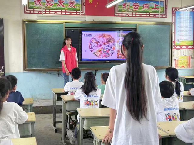 7月4号,实践团成员走进驻马店市黄埠镇小学五年级二班,为孩子们带来了一场“干货满满”的食品营养知识宣讲。宣讲队员首先通俗易懂的讲述了人体必须摄入的6大营养素,接着展示了一袋薯片与一块红薯的营养素组成,以有奖抢答的方式让同学们选出谁“最营养”。如此几轮抢答过后,大家兴趣高涨,求知若渴。实践队员以专业的角度解答了同学们的疑问,并结合中国居民膳食指南,为小学生推荐了一日三餐健康又美味的食谱。大家在欢乐轻松的氛围里学到了真知识,纷纷表示收获满满。宣讲活动有效地为青少年群体传递了食品营养健康知识,真正地对祖国的未来送出呵护与关怀。