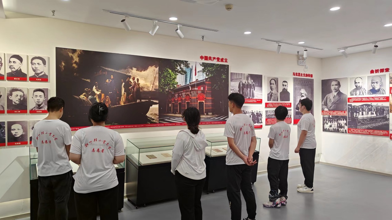 郑州党史纪念馆由“人民的胜利、艰难的探索、辉煌的跨越、崭新的时代”四个篇章组成,重现了中国共产党人不畏牺牲、前仆后继的伟大壮举,展示了中国共产党领导郑州人民浴血奋战、艰苦创业、改革创新的历史壮举。在讲解员的带领下,实践队成员参观了中国共产党成立史和新中国成立以来郑州发展历史,一张张照片、一件件历史实物、一段段真实史料和一份份详实档案系统回顾了在中国共产党领导下郑州的发展,展现了中原儿女在党的领导下从黑暗统治到全面解放、从社会主义建设到改革开放、进而步入新时代走过的艰辛历程。队员们怀着崇敬的心情,在一面面展墙前驻足观看,仔细聆听讲解,重温革命先辈的光荣事迹,用心感受一张张珍贵历史照片背后可歌可泣可赞的感人故事。