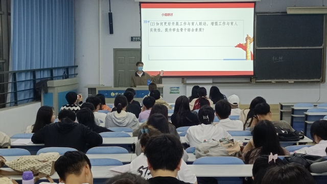 随后,围绕“青马学员在学习和生活中如何践行马克思主义”“青马班活力提升建议”“如何更好开展工作与育人联动,增强工作与育人实效性,提升青马学员综合素质”等主题进行全方位、多角度的深入研讨,思想碰撞,自我提升,并依次分享交流心得。青马班第一组学员易美君谈到:“作为青马学员,我们要做习近平新时代中国特色社会主义思想的‘先行者’,坚持不懈用马克思主义中国化的最新理论成果武装自己,积极参加社会实践和志愿服务活动,在新时代新征程中披荆斩棘,砥砺前行。”青马班第三组学员张羽扬谈到:“要加强班级文化建设,在建设过程中既要有目标意识,也要有过程意识,需要通过不断实践找到适合青马班的发展路径。”青马学会会员黄海柯说:“在育人方面,建设‘家’文化,提升成员归属感、参与感、成就感和责任感;积极组织内部团建,增进会员之间的情谊。”最后,范丹莹老师勉励全体学员,要珍惜时间,不负韶华,圆满完成大学生活,丰富个人经历,时刻牢记习近平总书记对青年的殷殷嘱托,争做有理想、敢担当、能吃苦、肯奋斗的新青年好青年。