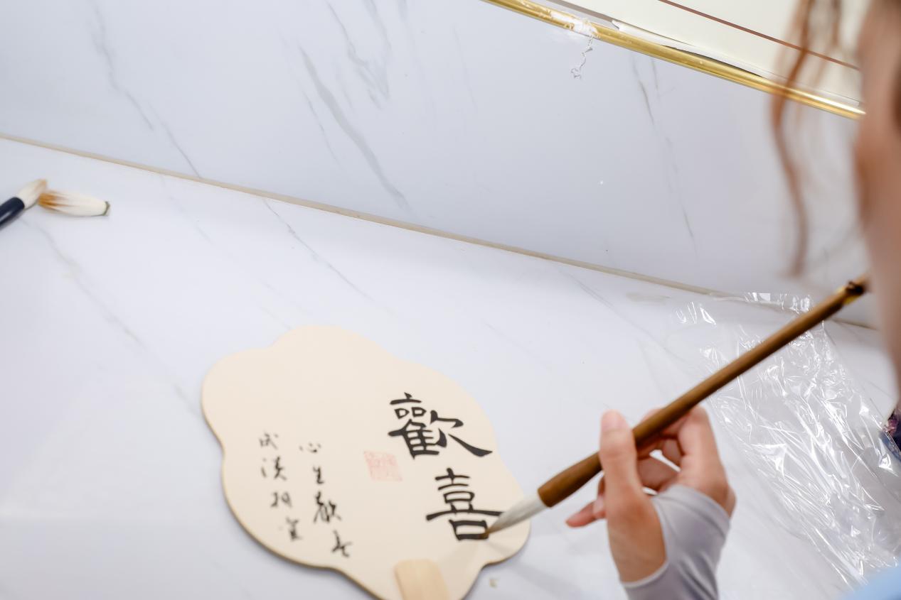 最后在刘好勤大师的带领下,实践队员们学习了毛笔书法的具体技艺,同学们纷纷在自己的扇子上展示自己的学习成果。毛笔舞动间,纸上墨痕如行云流水,仿佛让人置身于古代的书法典雅之中。每一笔都是对传统工艺的敬畏,每一划都是对文化传承的承诺。