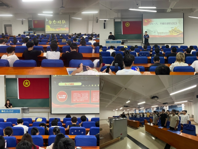 “五星红旗,你是我的骄傲……”,一首《红旗飘飘》拉开了本次活动的序幕,激情澎湃的歌声唱出了中华儿女对祖国的赤子之心及五星红旗在大家心中的那一份神圣感。回顾了中国历史上的那一段痛苦时光——九一八事变,团支部团员代表用朗诵表达了对那段历史的铭记以及对中华儿女不屈不挠精神的赞美,它是对历史的回顾,更是对我们国家坚强意志和民族精神的讴歌。随后,团支书带领广大团员通过观看纪录片及历史资料“沉浸式”学习了九一八事变的事件背景、事件经过及历史影响,鼓励同学们以史为鉴,勿忘国耻,勿忘历史,吾辈自强。最后,在辅导员老师的带领下,全体成员面向团旗,一起重温入团誓词,践行青春誓言。