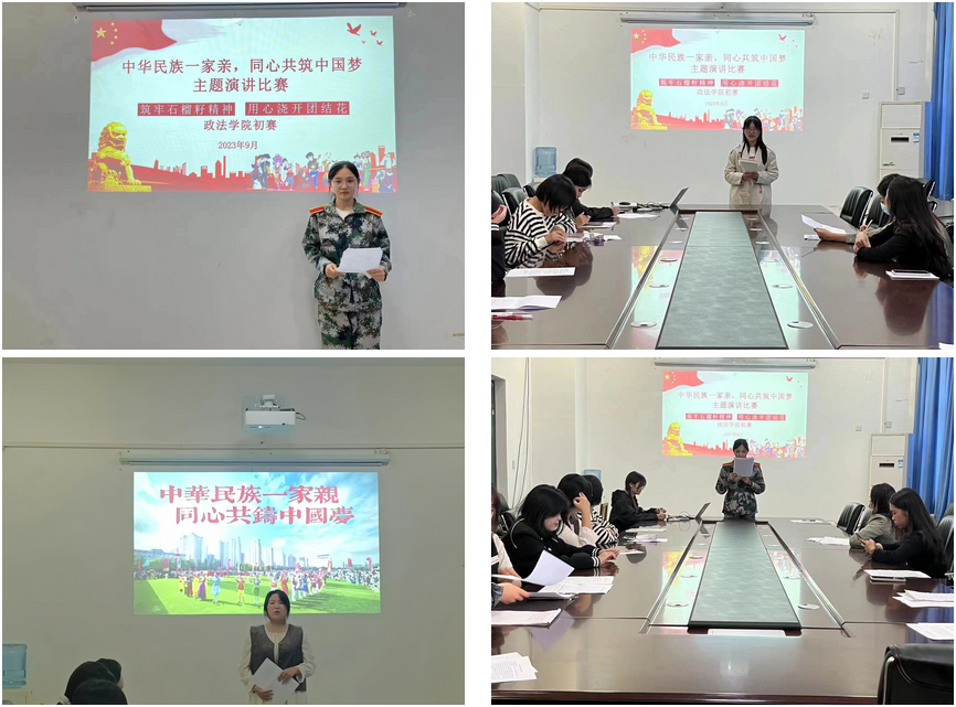 为庆祝中华人民共和国成立74周年,弘扬中华民族的优秀传统文化,促进全院师生进一步铸牢中华民族共同体意识,政法学院于9月28日中午在政法楼212开展“中华民族一家亲同心共筑中国梦”主题演讲比赛。