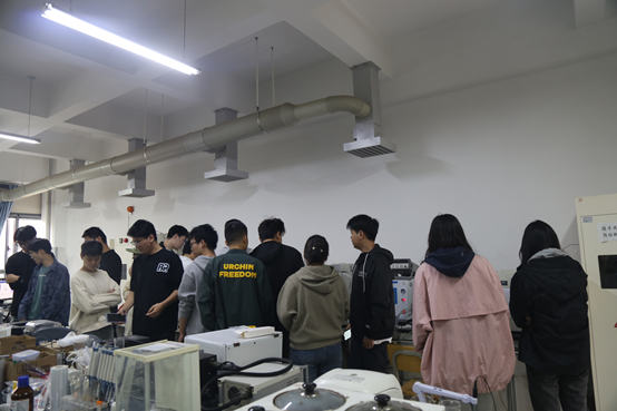 活动过程中,研究生会同学首先介绍了参观流程和注意事项,接着带领2023级研究生依次参观了工程楼438、426、425、422、421等科研实验室。高年级研究生结合个人研究课题,详细介绍所使用的实验设备,并进行操作演示。参观过程中,高年级研究生也分享了个人的科研经验和体会,强调了实验室安全和仪器设备规范操作的重要性。2023级研究生认真听讲,积极发问,现场交流氛围热烈。