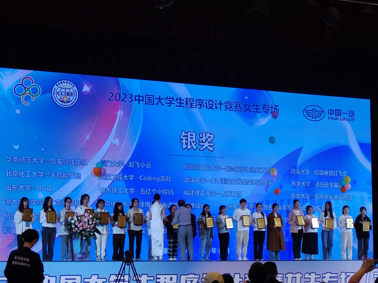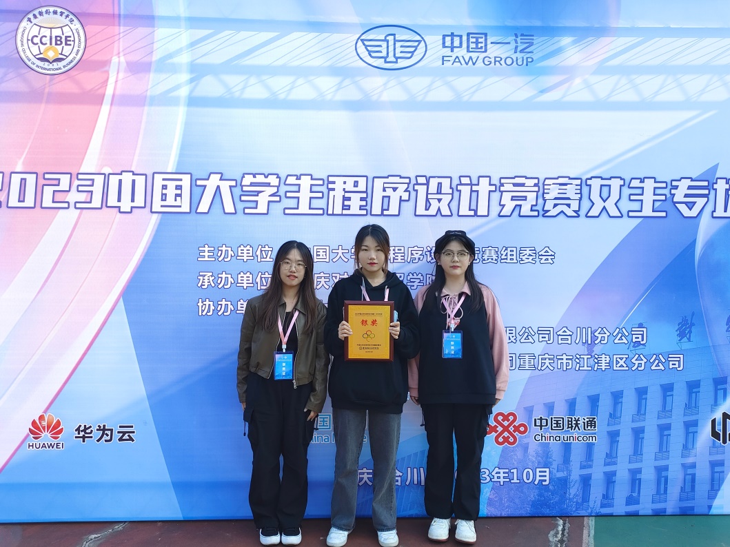 在长达五个小时的激烈紧张比赛中,我校由计算机科学与技术学院计算机21级的叶欣怡、移动软件21级的陈怡杉和曾显慧同学组成的代表队发挥出色,勇夺银奖,创造了我校在该项赛事的历史最好成绩。