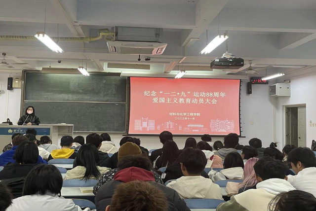 为纪念“一二·九”运动88周年,全面贯彻落实党的二十大精神和习近平总书记的重要思想,引领同学们传承红色基因,激发同学们的爱国精神,11月17日,材料与化学工程学院在教三楼406教室召开纪念“一二·九”运动88周年爱国主义教育动员大会,学院团委书记赵梦婕、2023级学生代表参加大会。