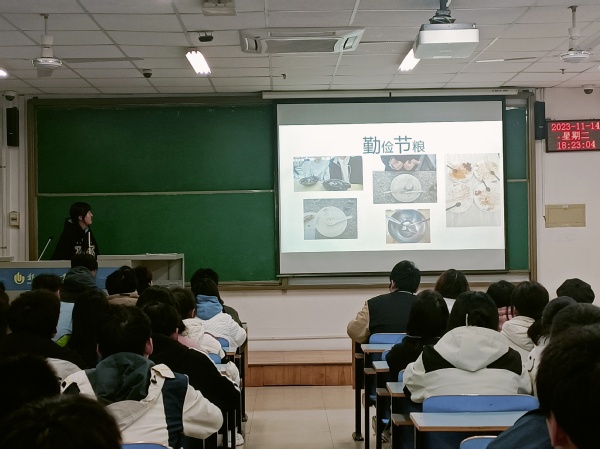活动中,各团支书通过节约粮食的重要性、部分地区粮食缺少现状等专题引导同学们树立正确的价值观,投身到勤俭节约的行动中去;向同学们普及世界粮食日相关知识,讲解粮食的耕种、收获、贮藏、加工等过程,并就粮食安全及危机做出简要说明,使同学们对粮食有了更好得了解。交流讨论环节中,同学们纷纷表示在今后的日子里不仅要树立节约的正确价值观,更要将反对浪费落实到生活的方方面面,为形成厉行节约的良好社会风尚出一份力。