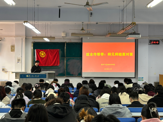 为助力低年级同学紧密结合实际情况,明确自身定位,做好职业生涯规划,树立正确的就业观,11月中下旬,数学与信息科学学院所有团支部以专业为单位分别组织开展了“就业传帮带·师兄师姐面对面”主题团日活动。学院优秀校友、奇瑞汽车股份有限公司数据分析师周厚龙作为主讲参加活动。