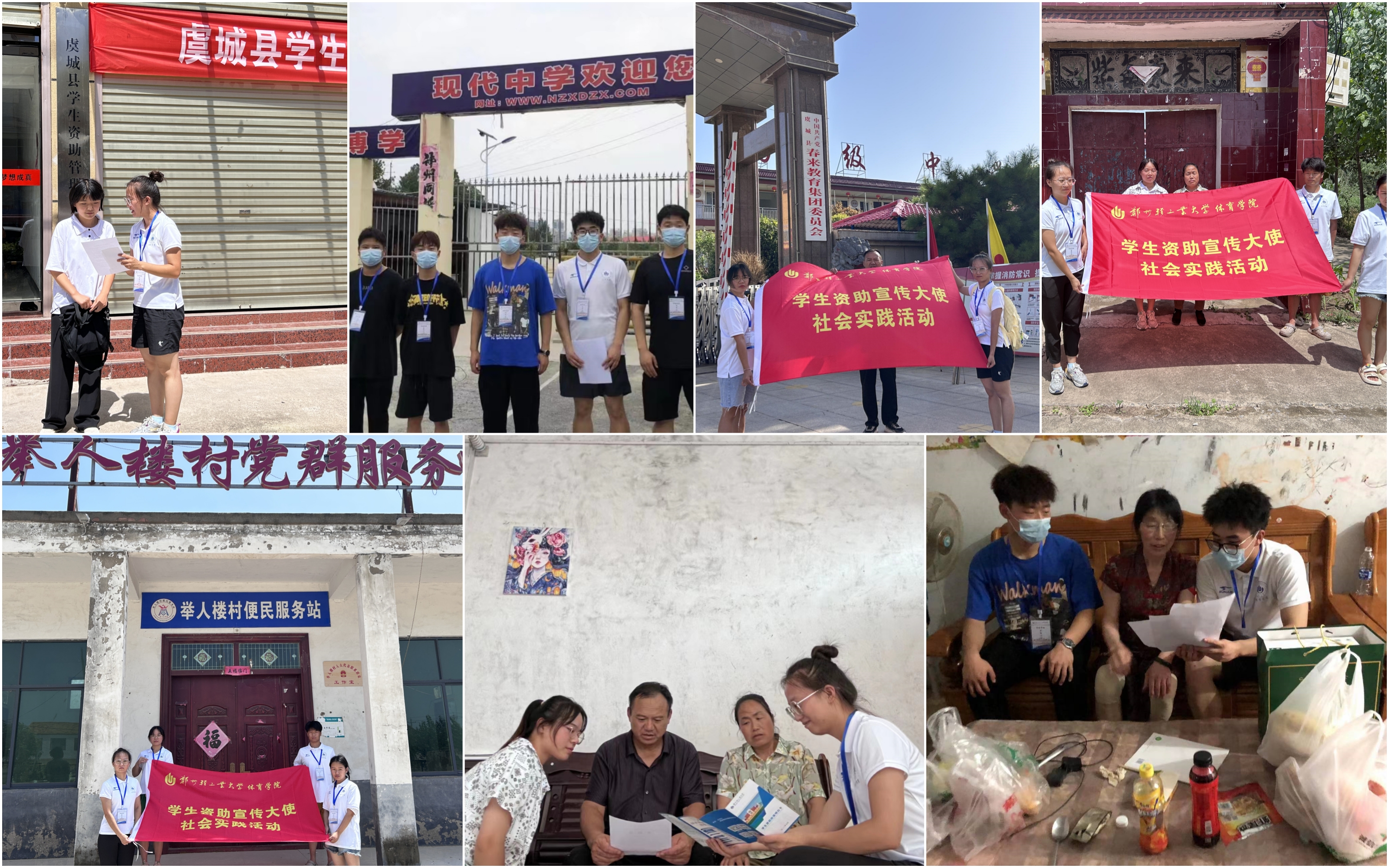 7月5日至8日,队员们分别前往南阳市南召县、商丘市虞城县的资助中心了解当地乡村振兴的基本情况和脱贫状况,并进行助学政策宣传。通过实地调研走访,使队员们对国家资助政策有了更加深入的了解,扩大学生对于资助政策的知晓面,同时收集了关于学校资助工作开展的建议。接着,队员们前往附近中学,通过发放宣传单、一对一交流等宣传方式面向当地学生宣传国家资助政策和介绍高校贷款以及相关法律知识,助力家庭贫困学生实现梦想。