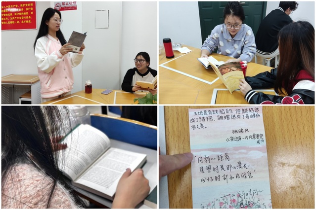 本次活动分为“21天读书打卡活动”和户外摄影两个环节,同学们纷纷积极参与。大家相互分享了自己喜欢的书籍片段,互相讨论彼此喜欢的书籍,有些同学站起来朗诵书中自己喜欢的句子,并把自己喜欢的书摘集合起来。读书打卡活动不仅可以使同学们养成阅读的好习惯,更加可以锻炼人的专注能力。通过活动,不仅让同学们感受到了阅读的乐趣,也让同学们放松了心情,缓解焦虑。随后,同学们前往校内寻找自己心中的最美校园风景,拍摄合影留念。
