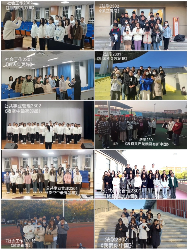11月25日,“爱国歌曲大家唱”活动一经发布,政法学院各个班级便踊跃报名参加,选取了“团结就是力量”“保卫黄河”“歌唱祖国”等经典歌曲作为参赛曲目,经过一周紧锣密鼓的准备编排,初步产生了10个优秀作品。经过学院评审和展示投票,最终公共事业管理2302班、社会工作2301班作品被评为一等奖,公共事业管理2301班、法学2302班、法学2301班作品被评为二等奖,社会工作2302班、Z社会工作2301班、Z法学2301班、Z法学2302班、Z公共事业管理2301班作品被评为三等奖。