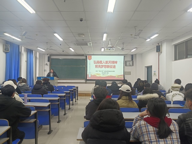为深入学习贯彻习近平新时代中国特色社会主义思想,加强对广大青年的政治引领,11月11日,政法学院团委书记栗想以“弘扬载人航天精神 照亮梦想新征途”为主题,为院级“青马工程”培养班第四组全体学员授课。