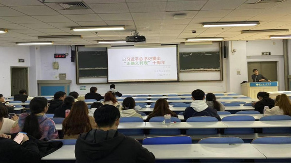 闫茂伟老师以自己生活中的案例向同学们阐述了“义”“利”“害”的形成与关系,引导大家正确对待和处理“义”与“利”的关系,重视道义与责任。为加深大家对“正确义利观”理念中的“义利相兼、以义为先”思想的深刻理解,闫老师强调正确义利观不承认丛林法则、霸权主义,反对以大欺小、以强凌弱、以众暴寡、以富压贫,而是要相互尊重、合作共赢、共同发展。通过与同学们共同探讨“正确义利观”的内涵以及其对国家和人民产生的影响,强调了“正确义利观”对个人、对社会、对国家、对世界的重要意义,并号召广大青年在看待国与国的问题上要坚持相互尊重、坚持平等。
