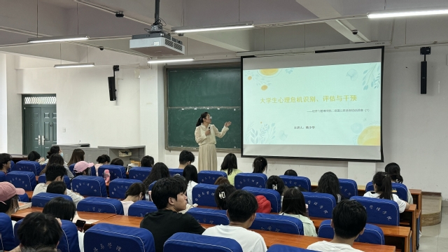 会议伊始,姚少华老师以《学生心理危机的识别和干预指南》,向二级蒲公英使者普及学生心理危机如何识别和干预手段,有助于及时发现、预防学生心理危机事件的发生。姚老师围绕常态预防途径、预警排查方法、评估风险等级等内容展开讲解,引导蒲公英使者要正确明晰并及时关注常见的心理危机信号,做好班级心理健康教育普及工作,从而能及时发现预防大学生心理问题。及时发现、提早预防是蒲公英使者做好班级心理健康工作的重要方法,本次培训引导同学们要养成健康的生活方式、学会情绪管理、加强社交支持、尝试认知重塑等,为保障同学们的心理健康给予多方面的支持和鼓励。培训最后,姚老师进一步强调了心理危机评估和干预对于维护个体心理健康的重要性,提出要密切关注同学们的心理变化,及时与辅导员沟通,并积极联系学校心理健康教育中心寻求帮助,为同学们多方面提供合理解决办法,妥善处理好遇到的每一个心理问题。