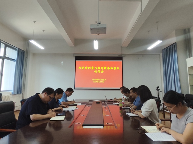 为扎实开展党纪学习教育,5月16日下午,工程训练中在双创楼307召开典型案例警示教育暨集体廉政谈话会。中心科级以上干部参会,会议由党总支书记阮世敏主持。