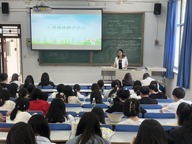 为进一步对学生提供个性化心理健康指导,促进学生全面发展,外国语学院于5月16日在东二楼100集中开展2024年“5·25”心理健康测评活动,2021级辅导员马宇和2021级全体学生参加。
