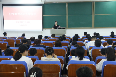 为深入学习贯彻全国两会精神和学校第五次党代会精神,5月16日下午,建筑环境工程学院邀请校党委讲师团成员黄天弘教授在工程楼100进行专题宣讲。全体教职工以及学生党员代表、积极分子代表参加了报告会,会议由党委书记段莹主持。