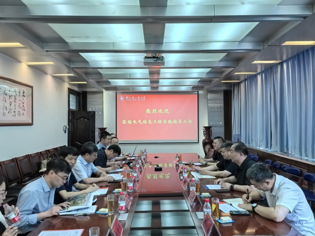 2024年5月17日下午新疆生产建设兵团第七师胡杨河市党委常委、第七师副师长、天北新区党工委书记李立新一行莅临电气信息工程学院访问交流。副校长张骁,科技处副处长吴诗德,电气信息工程学院领导班子及部分骨干教师参加交流会。会议由吴诗德主持。