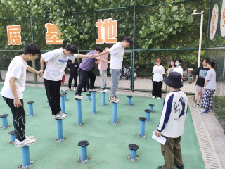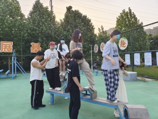 本次室外素质拓展活动由“生日排队”“礼让通行”“携手并进”“梅花桩”“盲目障碍”“模拟电网”六个环节组成。活动伊始,由蒲公英使者讲解活动项目的规则和注意事项。“生日排队”环节中,要求同学们通过非语言的沟通方式传递自己的生日信息,按照从大到小的顺序完成排队并分组,该环节迅速调动了同学们的积极性,使活动现场气氛变得活跃起来。在“盲目障碍”环节中,同学们蒙上双眼,在同伴的指引和保护下通过层层障碍,不仅锻炼同学们的平衡能力,也进一步增加彼此的信任感。在“模拟电网”“礼让同行”“携手并进”和“梅花桩”等环节中,同学们相互配合默契,努力攻克难关,展现出团队协作精神,不仅帮助同学们放松身心,释放压力,而且为营造和谐、温暖的集体氛围增添了一抹“心”的色彩。活动结束后,苗老师带领同学们积极展开研讨、分享个人心得体会,同学们纷纷表示在享受游戏带来的乐趣中个人的心灵得到了释放,在敢于拼搏争先的竞技中感悟到合作共赢的团队力量。