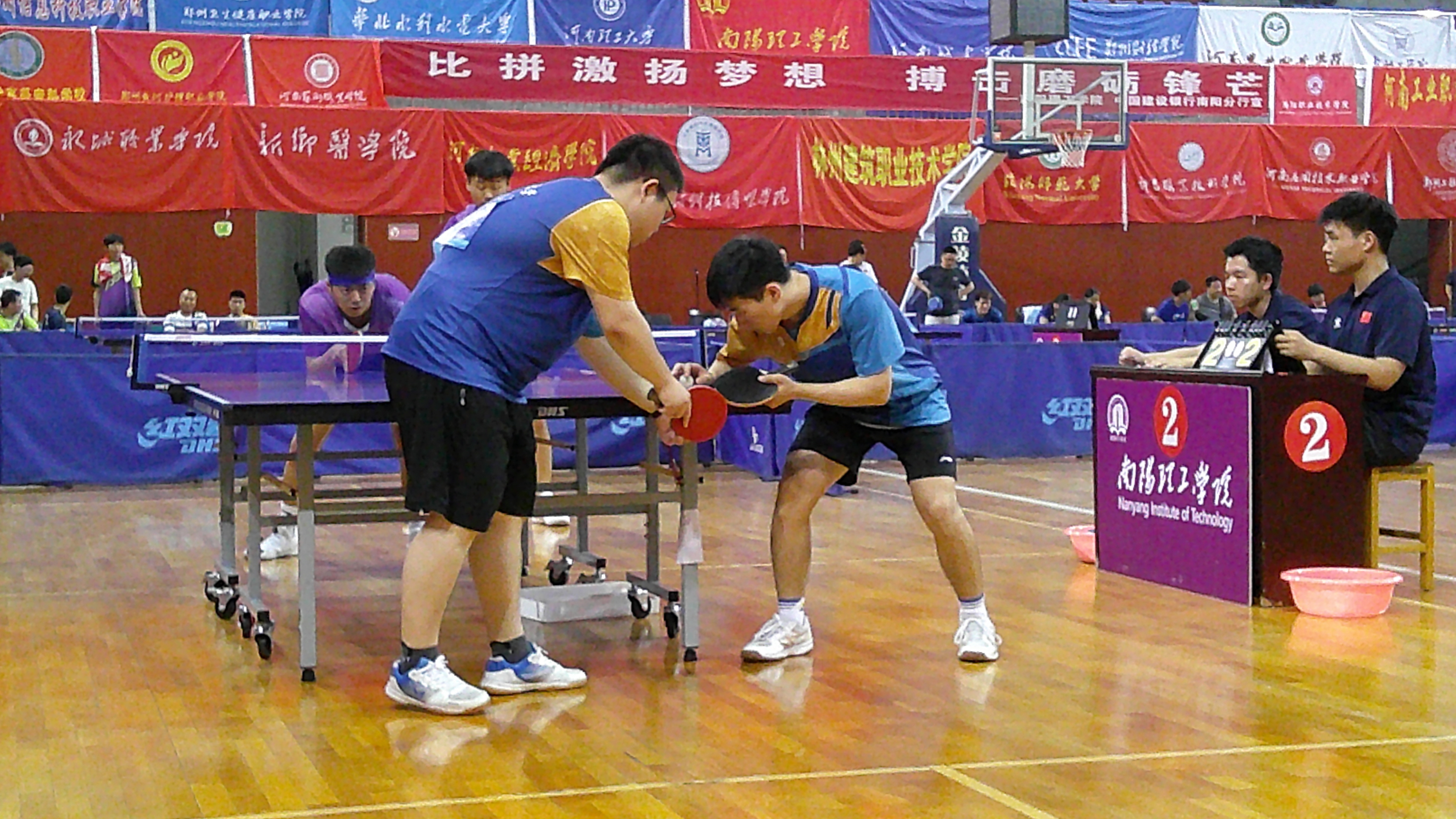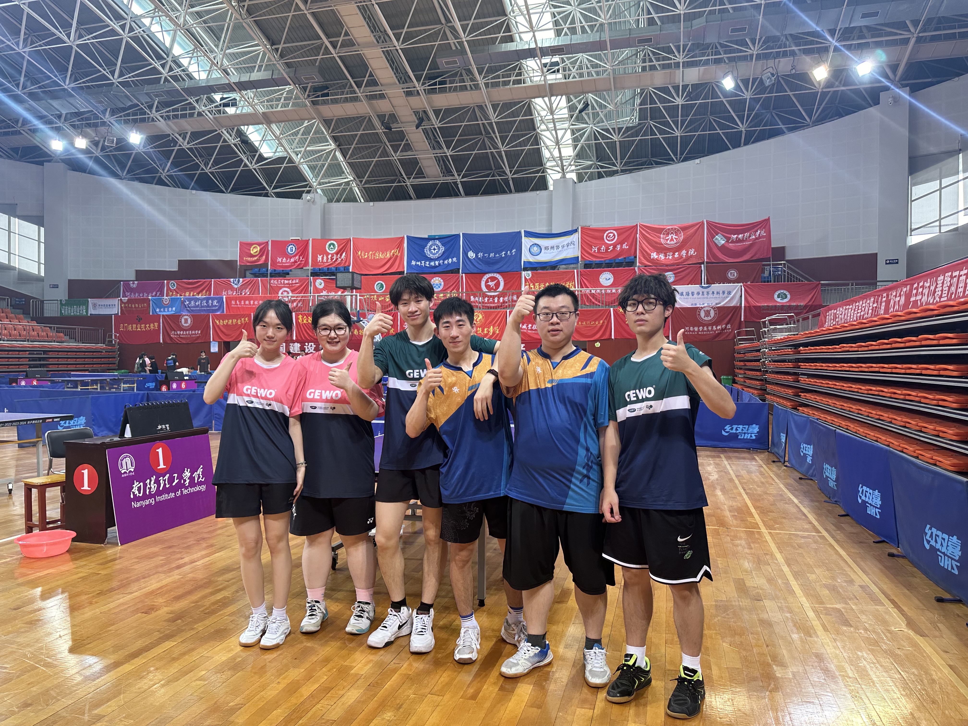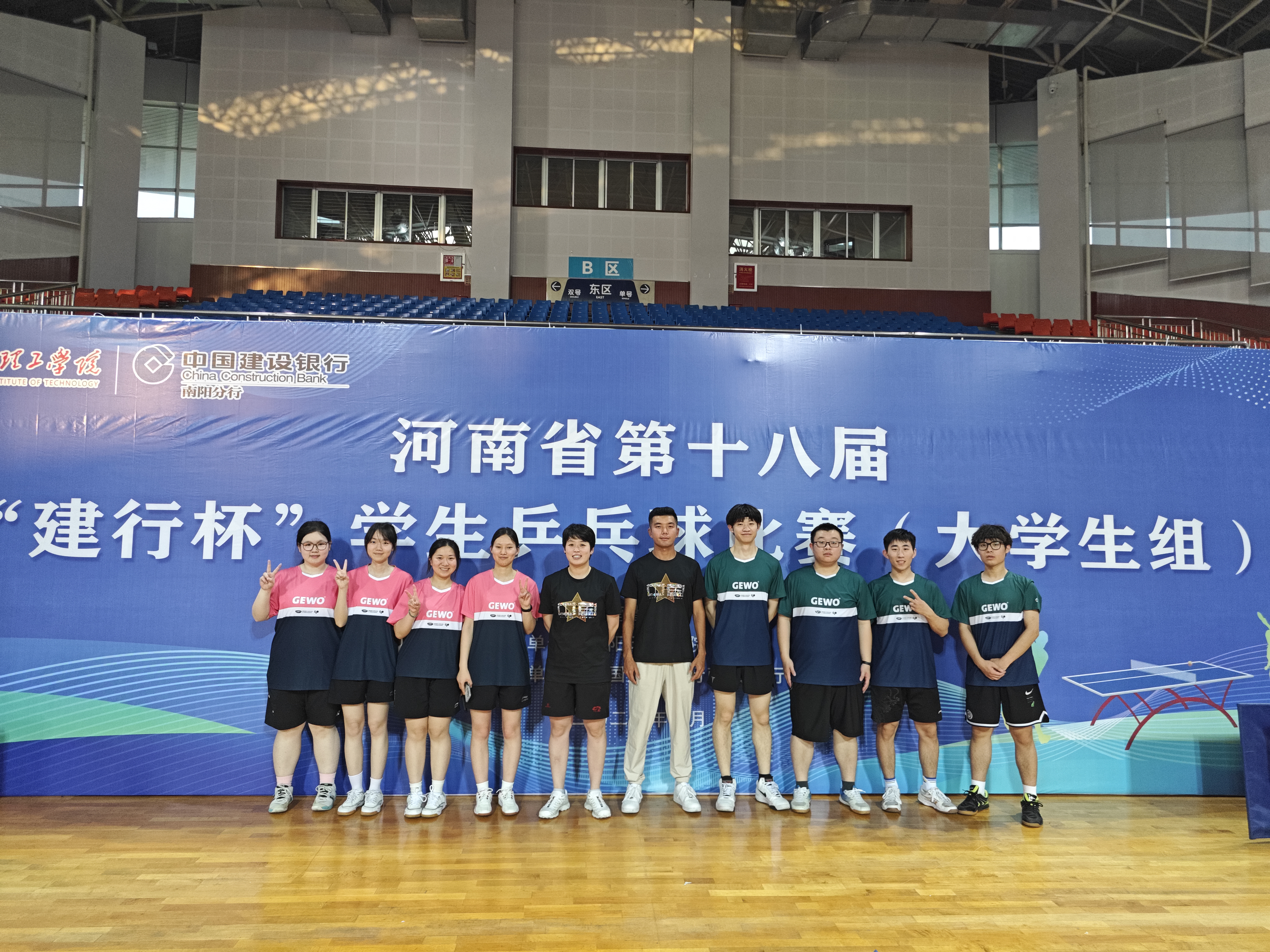 5月26日,河南省第十八届学生乒乓球比赛(大学生组)在南阳理工学院圆满落幕。 此次比赛共有来自全省40所本科院校、38所专科院校的530余名运动员同场竞技。我校8名学生运动员、2名教练员在领队方慧的率领下,参加了本科甲组比赛。