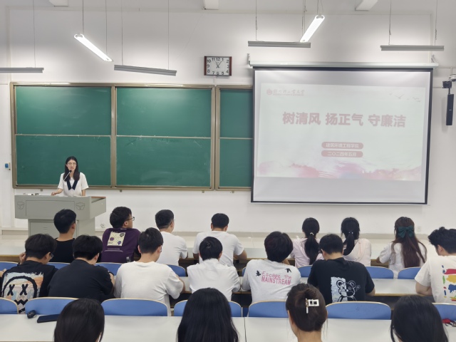 为深入学习习近平总书记关于党纪学习教育的重要讲话和重要指示精神,进一步增强毕业生党员的党性修养和廉洁自律意识,近日,建筑环境工程学院在工程楼108室开展“树清风 扬正气 守廉洁”毕业生党员廉洁教育活动。本次活动由建筑环境工程学院学生第一党支部书记寇誉元主讲,学院2024届毕业生党员参加此次学习。