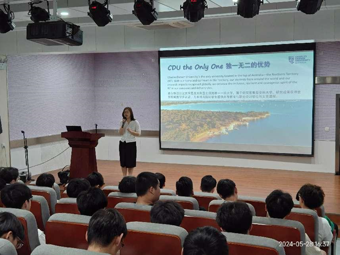 随后,沈慧女士与国际教育学院的学生举行了见面会,详细介绍了查尔斯达尔文大学的校区位置、特色专业、入学条件及学生就业等情况。同学们积极提问,气氛活跃,反响强烈。