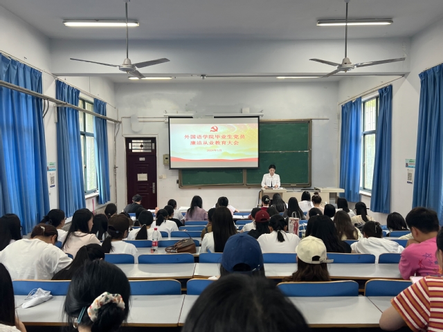 为进一步增强毕业生党员廉洁从业意识,推进党纪学习教育入脑入心,提高党员党性修养,5月30日下午,外国语学院在东二楼100召开毕业生党员廉洁从业教育大会,全体2024届毕业生党员参加了此次会议,会议由学院副科级组织员张力方老师主持。