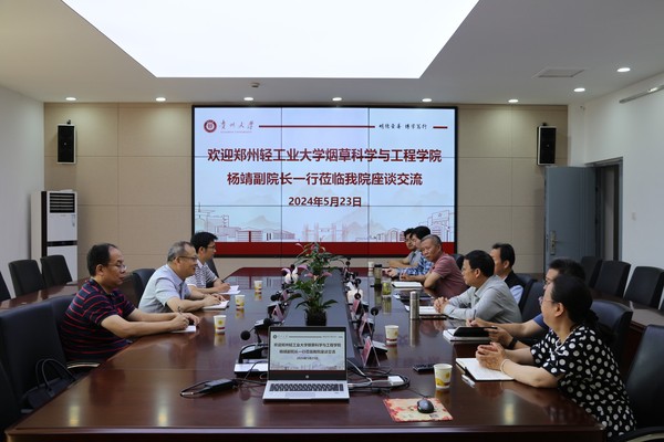 在贵州大学烟草学院,院党委书记金春雷主持了双方的交流会并对杨靖副院长一行来访表示热烈欢迎,院长杨茂发介绍了烟草学院的发展历史、新利18 菲律宾