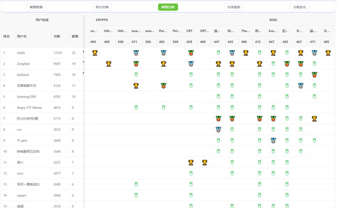 本届比赛扩展了知识面,内容包含网络安全基础、网络协议、操作系统安全、密码学与信息加密、Web安全等各类知识点与技术,特别增加了人工智能安全的相关内容,在密码学、杂项和Crypto方面也更加深入,难度相比第一届略有提升。经过激烈的角逐,最终chaOs战队、ZongRan战队、badland等队伍获得校内赛道积分总榜前十,糖果罐里好多颜色战队、FBX等校外战队名列校外赛道积分总榜前十。