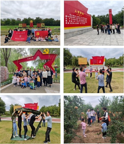 上午10时许,大家来到荥阳红色党建基地公园,这里风景优美,空气清新。老师们怀着崇敬的心情参观了各个展区,重温了长征故事,庄重地进行了入党誓词宣誓。在团建环节,丰富多彩的趣味活动火热开展。风火轮比赛中,各小组齐心协力,共同推动 “风火轮” 前进,展现出了团队的协作与默契;同心鼓比赛中,大家心往一处想,劲往一处使,通过紧密配合让鼓上的球有节奏地跳动;尖叫鸡游戏更是充满了欢声笑语,缓解了工作压力,增进了同事间的感情。最后,老师们来到石榴园,亲自体验采摘石榴的乐趣,感受秋日的丰收喜悦。