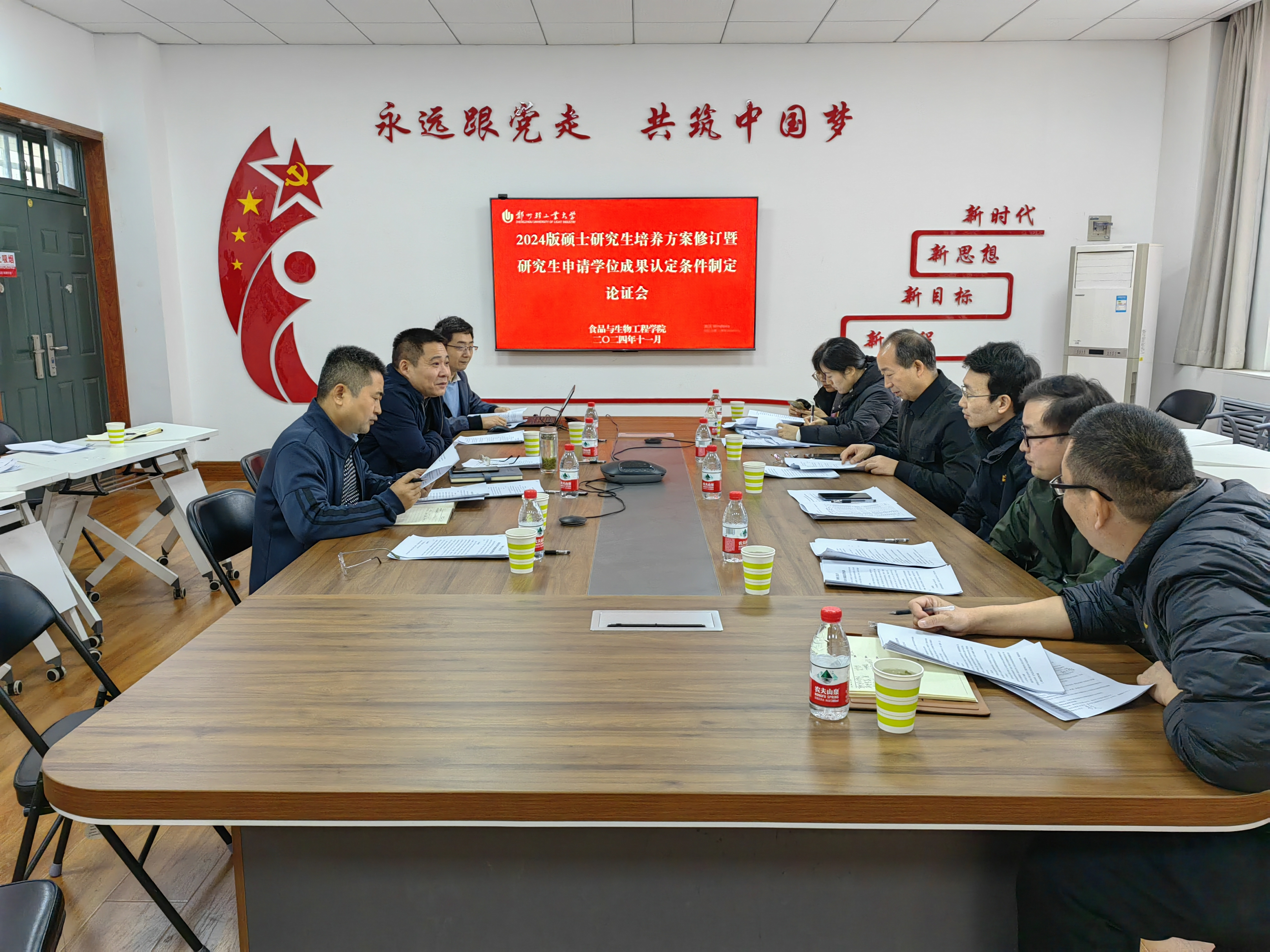 为提升我院人才培养质量,促进研究生教育高质量发展,11月18日,食品与生物工程学院召开研究生培养方案修订暨研究生申请学位成果认定条件专家论证会。本次参加现场论证的专家有河南工业大学刘伟教授、河南农业大学谢新华教授,研究生院副院长荆晓艳、副院长曹卫锋,学院院长张华、副院长相启森、研究生导师、学科骨干等参加了会议,会议由食品与生物工程学院副院长相启森主持。