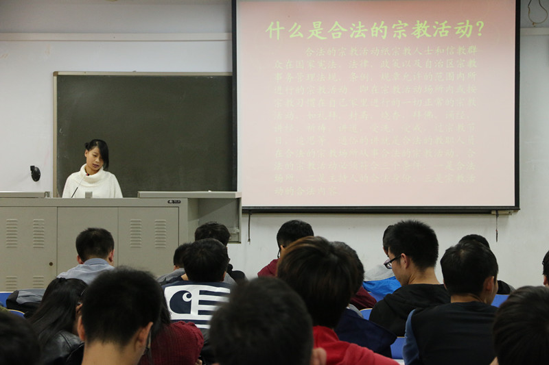 为贯彻党的十八大精神,全面落实依法治国战略,提高大学生法治观念,学习党的宗教政策,推进和谐稳定校园建设,10月29日下午,建筑环境工程学院在教三楼210教室举行了“弘扬法治精神,学习宗教知识”主题团日活动。