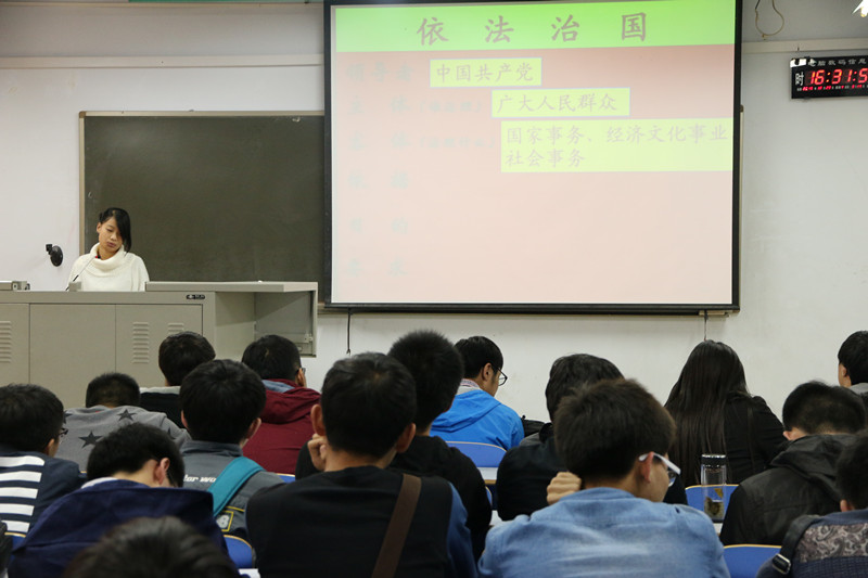 首先同学们共同观看了关于依法治国的有关视频资料,主持人金颖同学向大家讲解了有关宗教的基本定义和合法的宗教活动,接着重点讲述了依法治国的重要性,依法治国是人民当家作主的基本保证,是发展社会主义市场经济的客观需要,是社会文明和社会进步的重要标志,更是维护社会稳定、实现国家长治久安的重要保证。