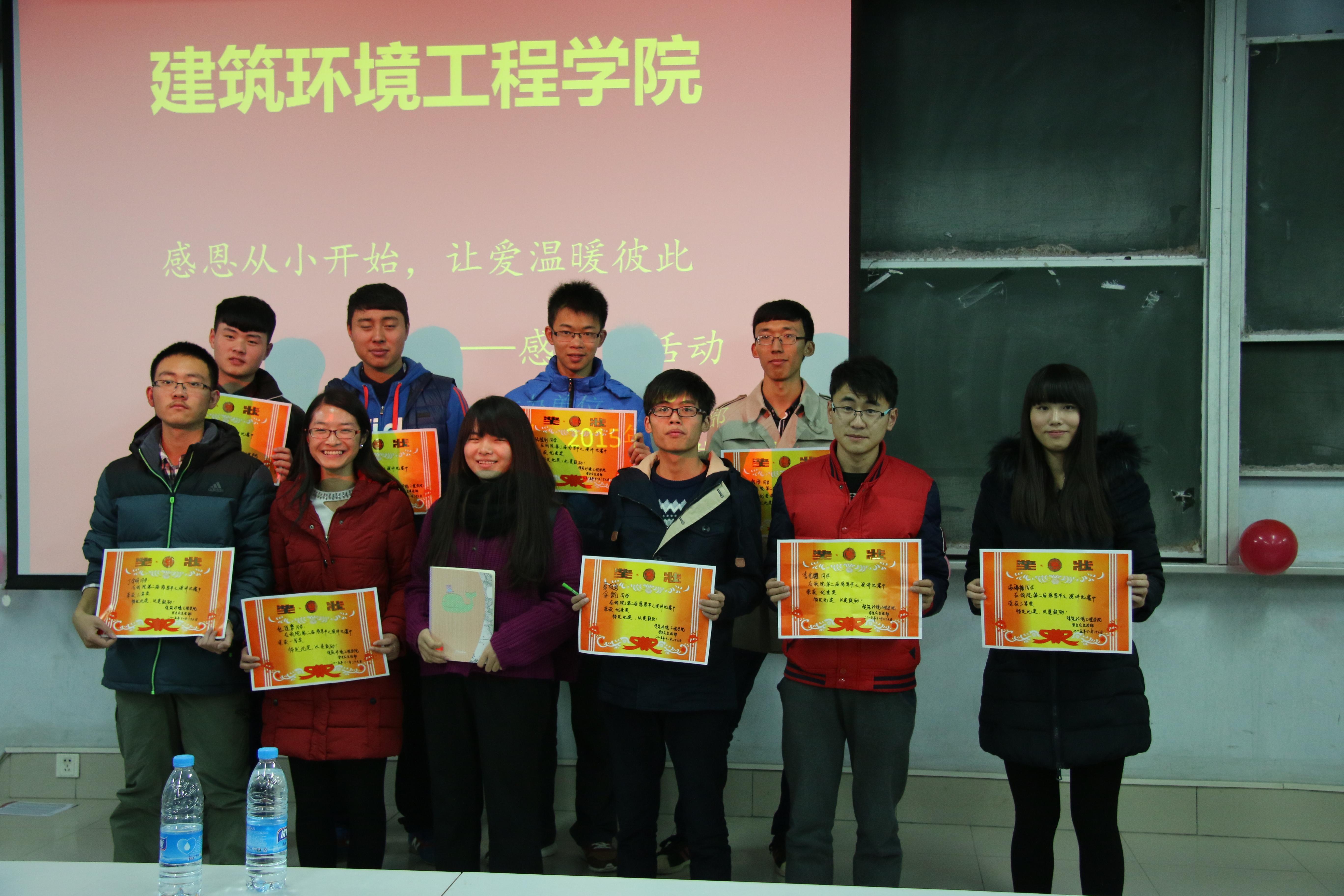 为丰富大学生课余文化生活,为提高青年学子的感恩意识,纪念“一二·九”运动80周年,建筑环境工程学院于11月26日晚在东一楼200教室举办了“感恩从小开始,让爱温暖彼此”感恩节主题演讲比赛。