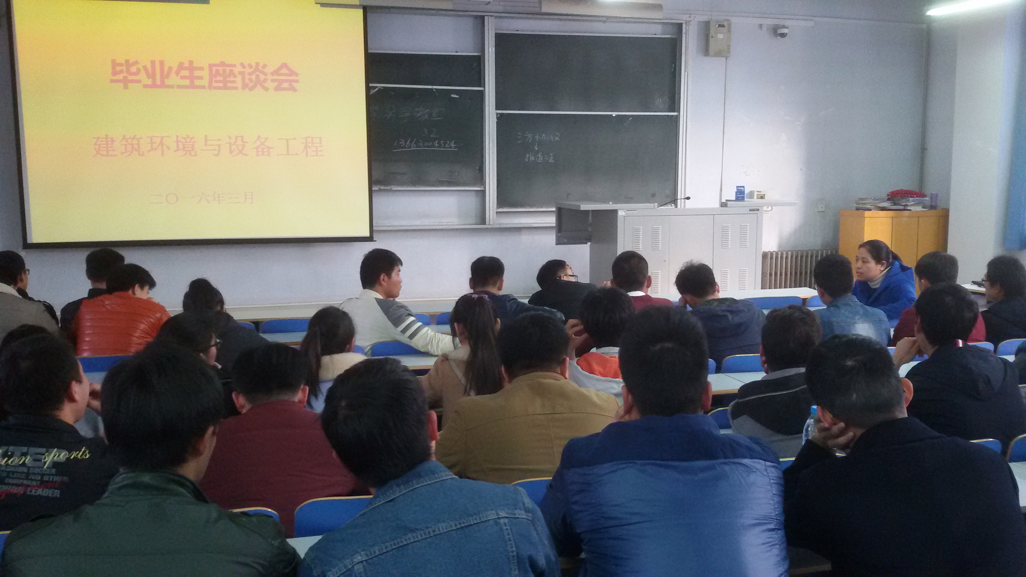 新学期伊始,为进一步了解2016届毕业生的思想状况,帮助毕业生掌握求职方法、树立求职信心,建筑环境工程学院于3月2日下午4点在东一楼200召开建筑环境与设备工程专业毕业生就业座谈会。院党总支副书记常亮、分团委书记方婳婳、教师代表张文慧及辅导员老师参加了此次座谈会。