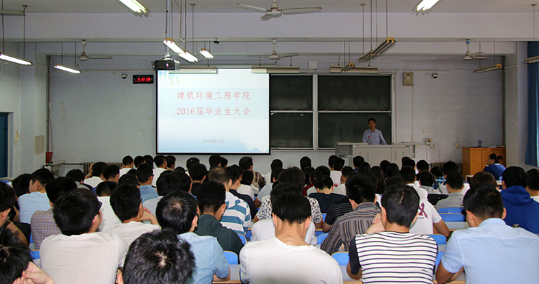 为加强毕业生的教育管理,倡导毕业生文明安全离校,5月26日上午,建筑环境工程学院在东一楼200教室召开2016届全体毕业生大会。建工学院党总支书记刘吉彬、党总支副书记常亮、分团委书记方婳婳、学工办主任周辉及2016届全体毕业生参加了本次会议。大会由方婳婳老师主持。