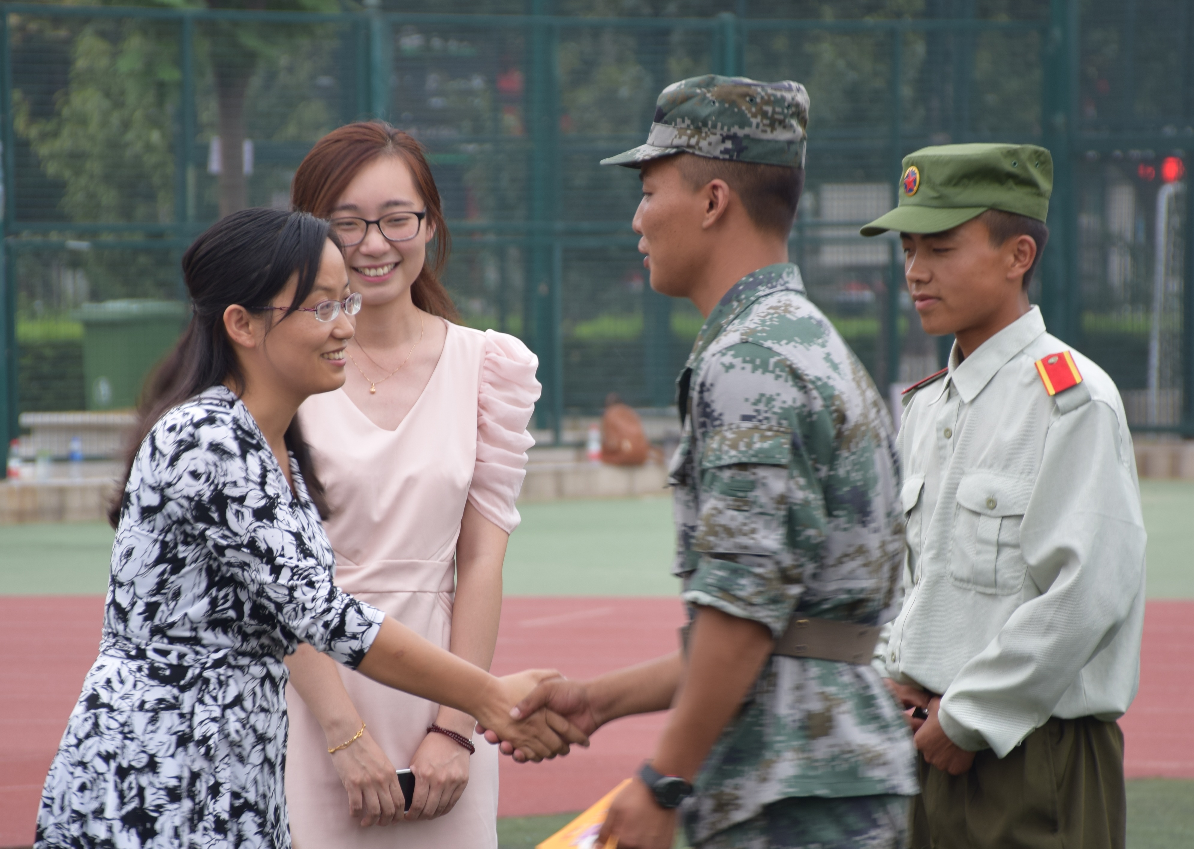 首先,学院老师向辛勤工作的承训教官表示感谢,向努力训练的新生们致以节日的问候,对同学们在军训中表现出的坚韧不拔、积极进取精神给与赞扬和肯定,并希望同学们能继续发扬敢于战斗、勇于战斗、战斗到底的军旅精神,严格要求自己,不怕苦、不怕累,顺利完成踏入大学校门的第一课,为接下来的四年大学时光做好准备。
