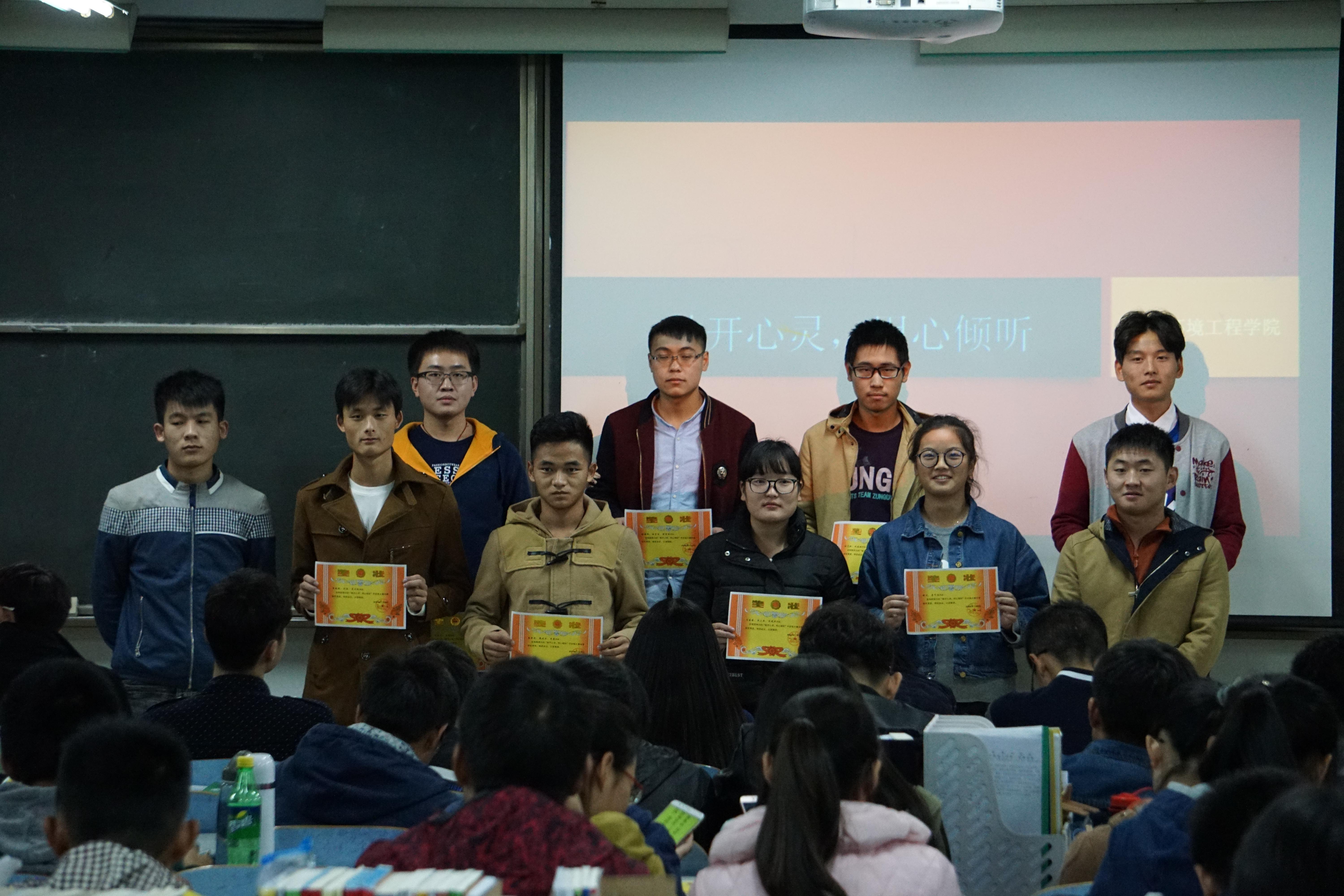 经过认真评比,共评选出一等奖6名,二等奖12名,三等奖18名,优秀奖12名,班级“优秀组织奖”一名,班级“最佳贡献奖”一名,并于11月2日晚在教三楼804举行了“敞开心灵,用心倾听”心理手抄报颁奖仪式。