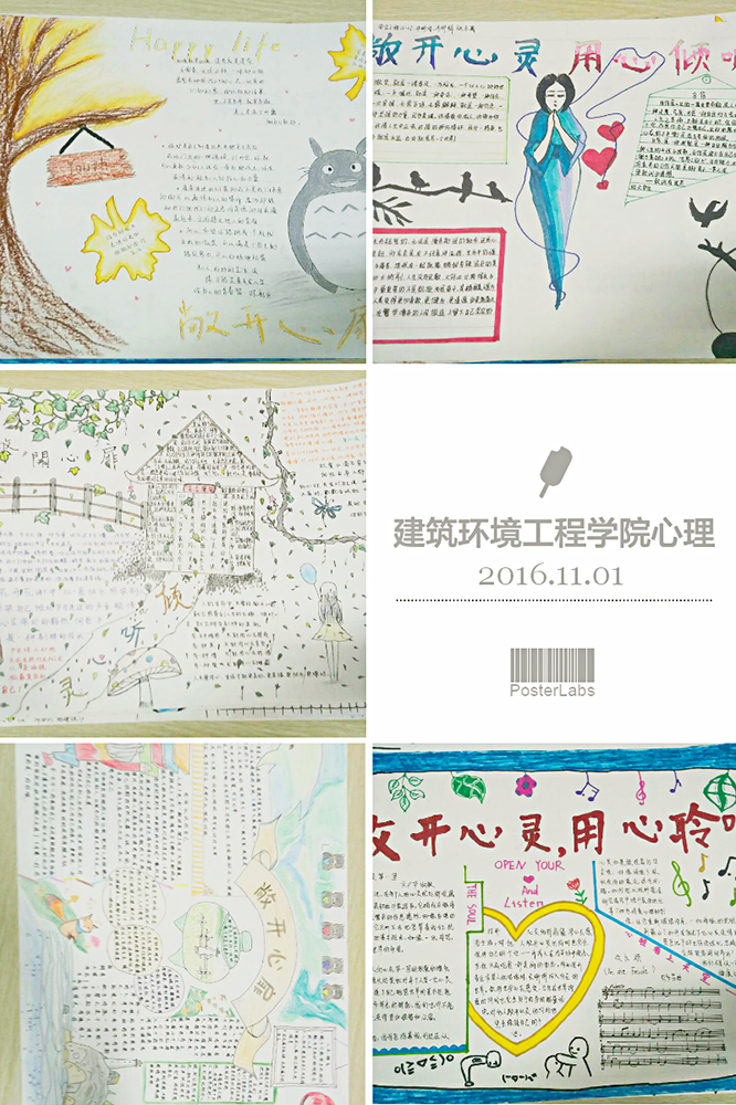 为了普及心理健康知识,加强同学们心理素质的培养,让同学们认识到心理健康的重要性,建筑环境工程学院于10月20日至11月2日举行了“敞开心灵,用心倾听”心理手抄报大赛。
