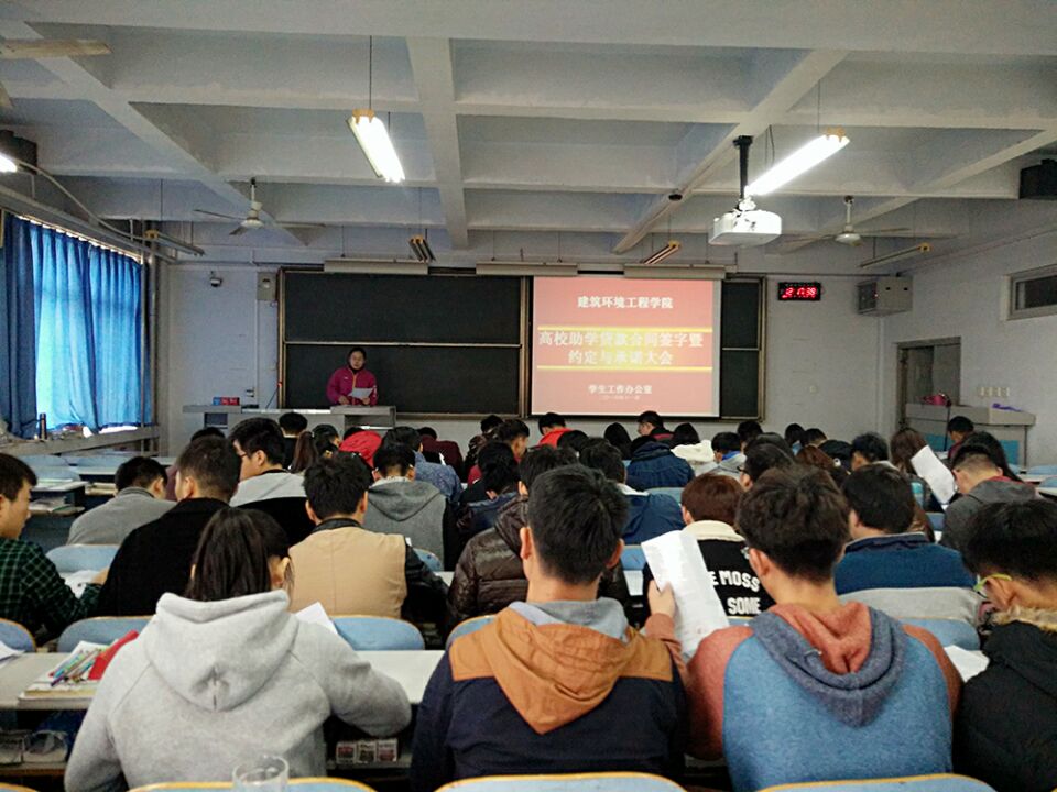 为了提高大学生的诚信意识,宣传国家助学贷款政策,保障我校助学贷款工作的有序进行,11月7日中午,建筑环境工程学院在教三楼804举行了2016年国家高校助学贷款合同签订暨约定与承诺会议。我院负责贷款的周辉老师及申请高校助学贷款学生参加了本次会议。