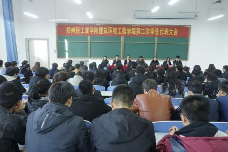 2017年12月21日下午两点三十分,郑州轻工业学院建筑环境工程学院第二次学生代表大会于科学校区工程楼108室隆重召开。学院党总支书记刘吉彬、学院党总支副书记常亮、分团委寇誉元、校学生会常务副主席赵仕杰、校学生会副主席范文杰和135名学生代表参加此次大会。
