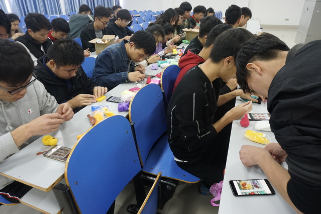 活动中,同学们充分发挥想象力,通过超轻黏土手工制作来表现心中的自我,表达自己内心的情感。同学们相互交流、相互帮助完成彼此的作品,有的同学捏出了活泼可爱的卡通人物,有的捏出了身边朝夕相处的好友,有的则捏出了各种鲜嫩多汁的水果。整个活动中,同学们脸上洋溢着灿烂的笑容,完全沉浸在自己手中的黏土上,忘却了学习生活中的烦恼。一个个作品在同学们的巧手中逐步完成后,大家拿着自己的作品一一上台展示。一个个精美可爱的作品赢得了同学们由衷的赞美,这赞美也使大家深深体会到了欣赏的美好与赞美的力量。